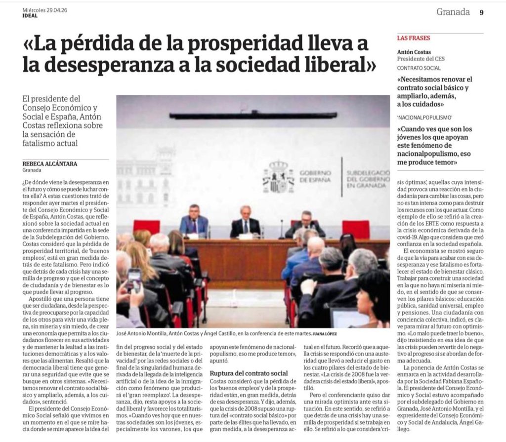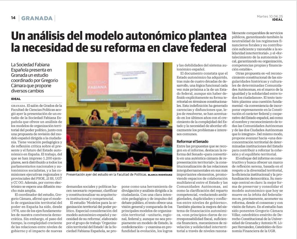 Además, ha creado grupos de trabajo sobre temas relevantes en España, como la organización territorial del Estado y la calidad democrática, abordando la desafección ciudadana y el auge de los populismos.
